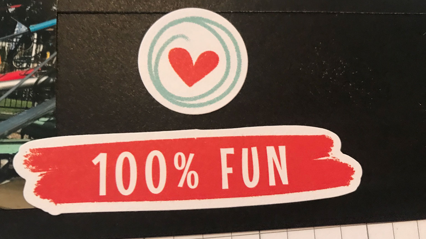 For creating this free Cricut scrapbook layout, I used the black card stock for the roller coaster, words and the bottom rectangle. For the flags and banners I used lemonade, paprika, and blue belle. Since the flag poles are so small, I used Cricut black vinyl for them. I like to add vinyl to scrapbook pages because sometimes it’s just easier than glueing really small pieces.