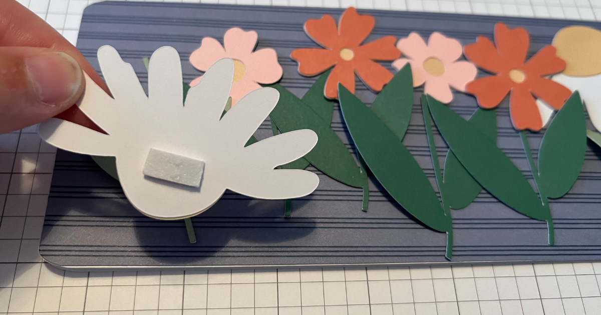 Glue on just the flowers with 3D foam tape and make sure the flowers are above the fence.