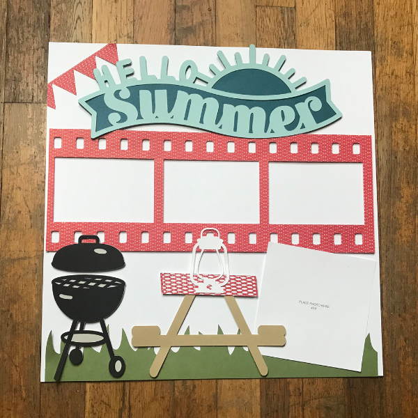 For cutting the picnic scrapbook page, try to use an older green standard mat or the light grip blue mat. With these mats, your card stock won’t stick as bad or be difficult to remove (it will curl too). Try pulling the mat away from the card stock to remove it and remove each piece gently and slowly. Some of these images do have small pieces (like the grill and tablecloth) so you may need your piercing tool or Cricut weeding tool to remove some of these small pieces.